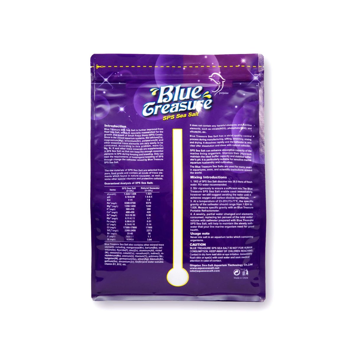 This premium salt contains a complete range of essential trace elements including Ca, Mg, Sr, I, Mo, Fe, Mn, Ba, Se, Br, F, Li, Zn, Ni, Co, B, V, along with water-soluble vitamins B1 and B12. It is completely free from harmful substances such as nitrate, phosphate, and silicate, ensuring a healthier reef environment. Blue Treasure SPS Sea Salt dissolves quickly, mixes cleanly, and delivers stable buffering capacity to maintain ideal pH levels. Its advanced formula enhances nutrient absorption, strengthens immune function in marine organisms, and supports the growth of even the most sensitive SPS species. Trusted by public aquariums, coral farms, and marine research facilities worldwide, it is an excellent choice for high-performance reef systems.