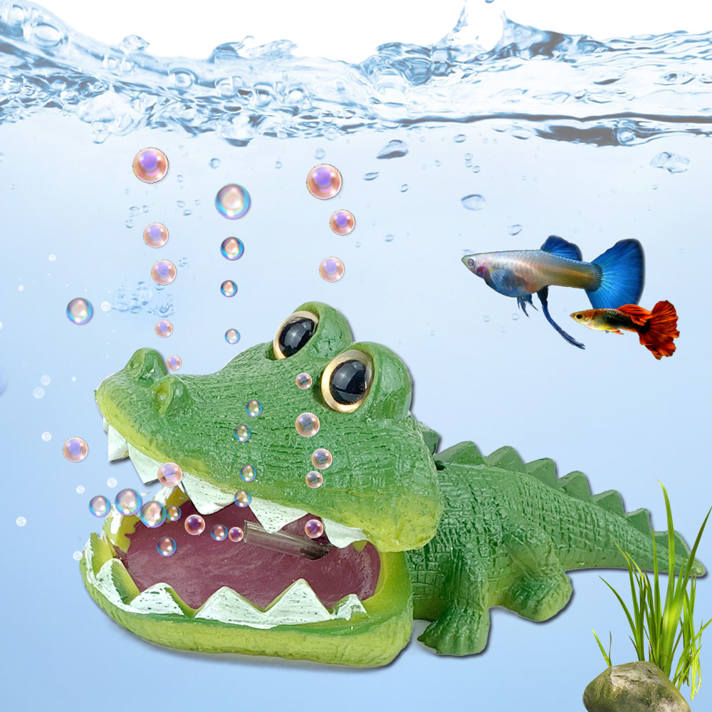 Artificial Resin Crocodile Aquarium Ornament with Air Pump Feature