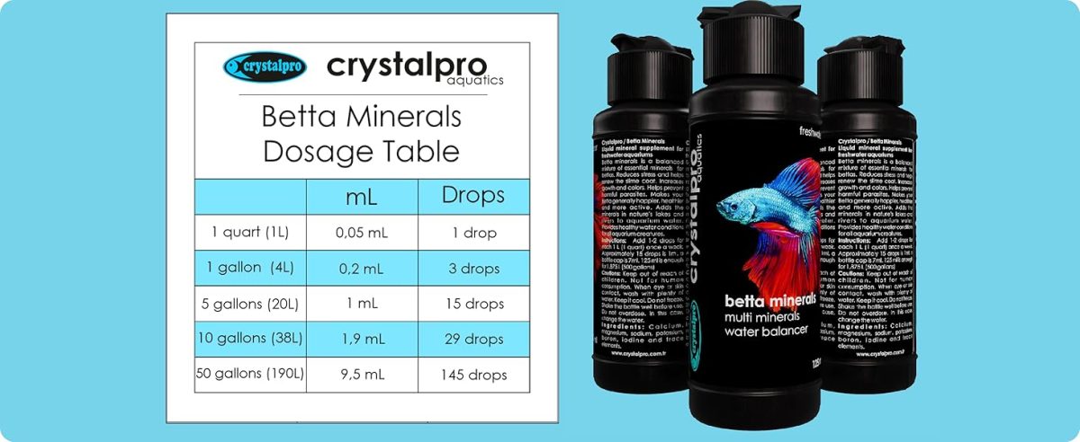 Betta minerals is a balanced mixture of essential minerals for betta fishes. Increases growth and colors. Helps prevent harmful parasites. Adds the minerals in nature’s lakes and rivers to aquarium water. Provides healthy water conditions for aquarium creatures.