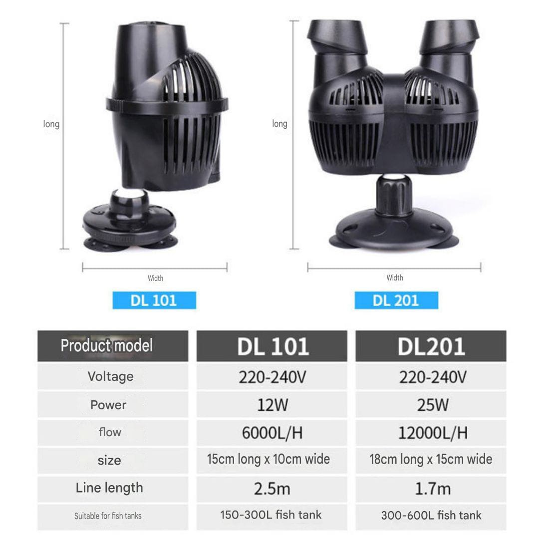 Minjiang DL-201 is a compact and efficient submersible aquarium waves maker designed to provide strong water circulation, improved oxygenation, and stable filtration performance. Ideal for small and medium freshwater aquariums.