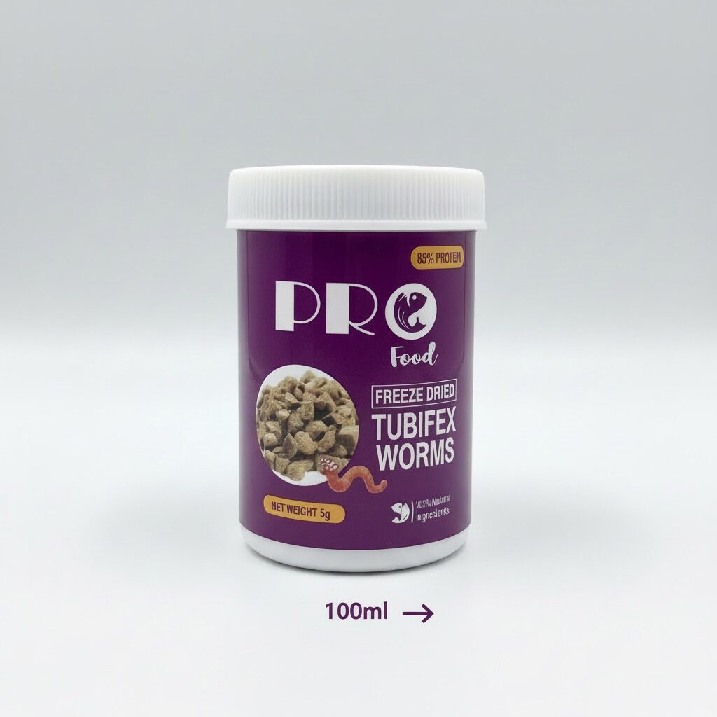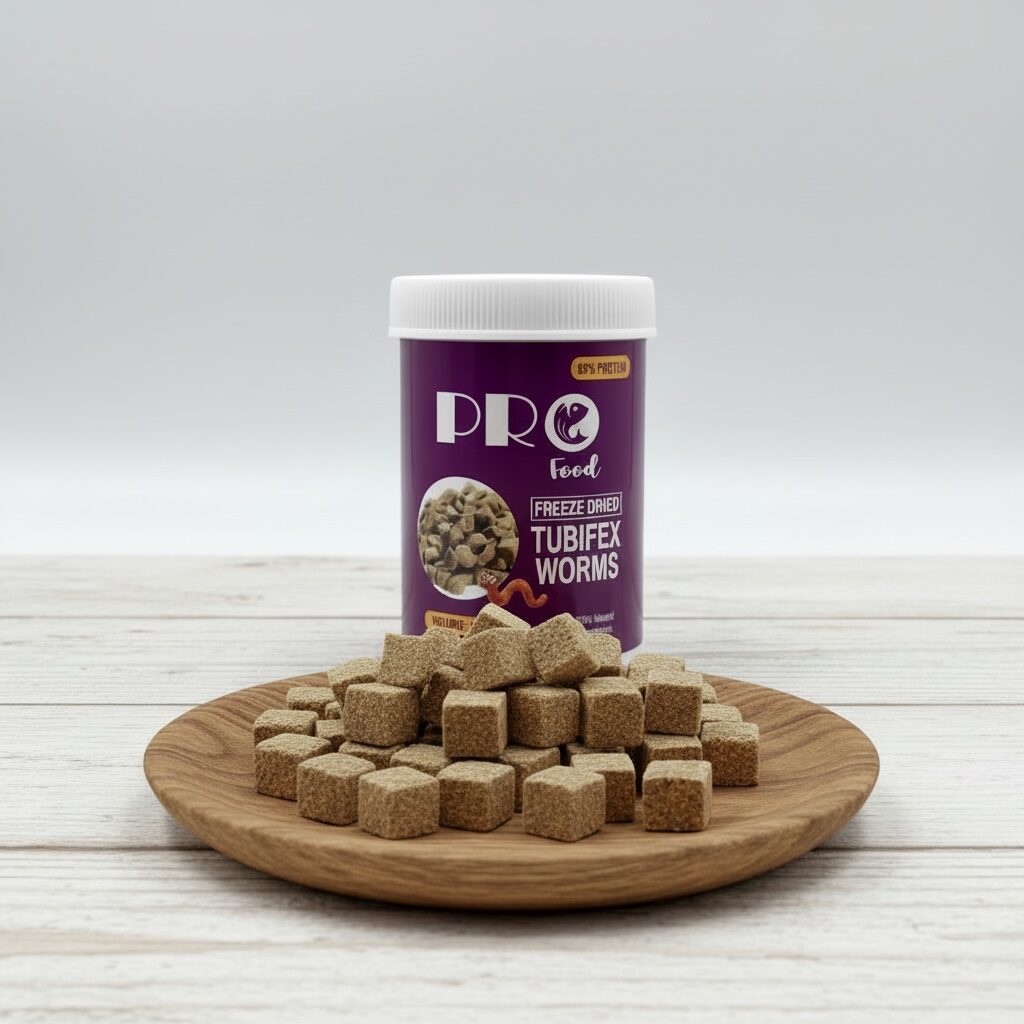 Today’s unique food is actually tubifex worms processed by the new freeze dried technique. Removal of moisture under vacuum at sub zero temperature. This process preserves the excellent nutritional factors of live Tubifex worms and also preserves their flavour. Just like real worms. Without all the fuss and bother. In cube form. Excellent for all varieties of Tropical Fish, Gold fish, Marine fish and turtle. No refrigeration required. Keep sealed when not in use.