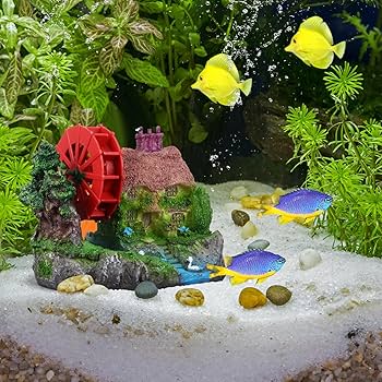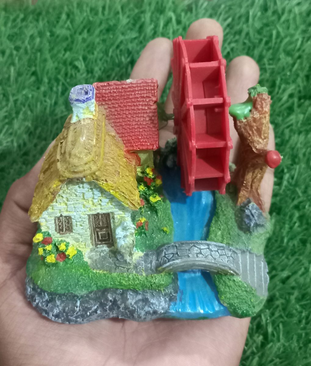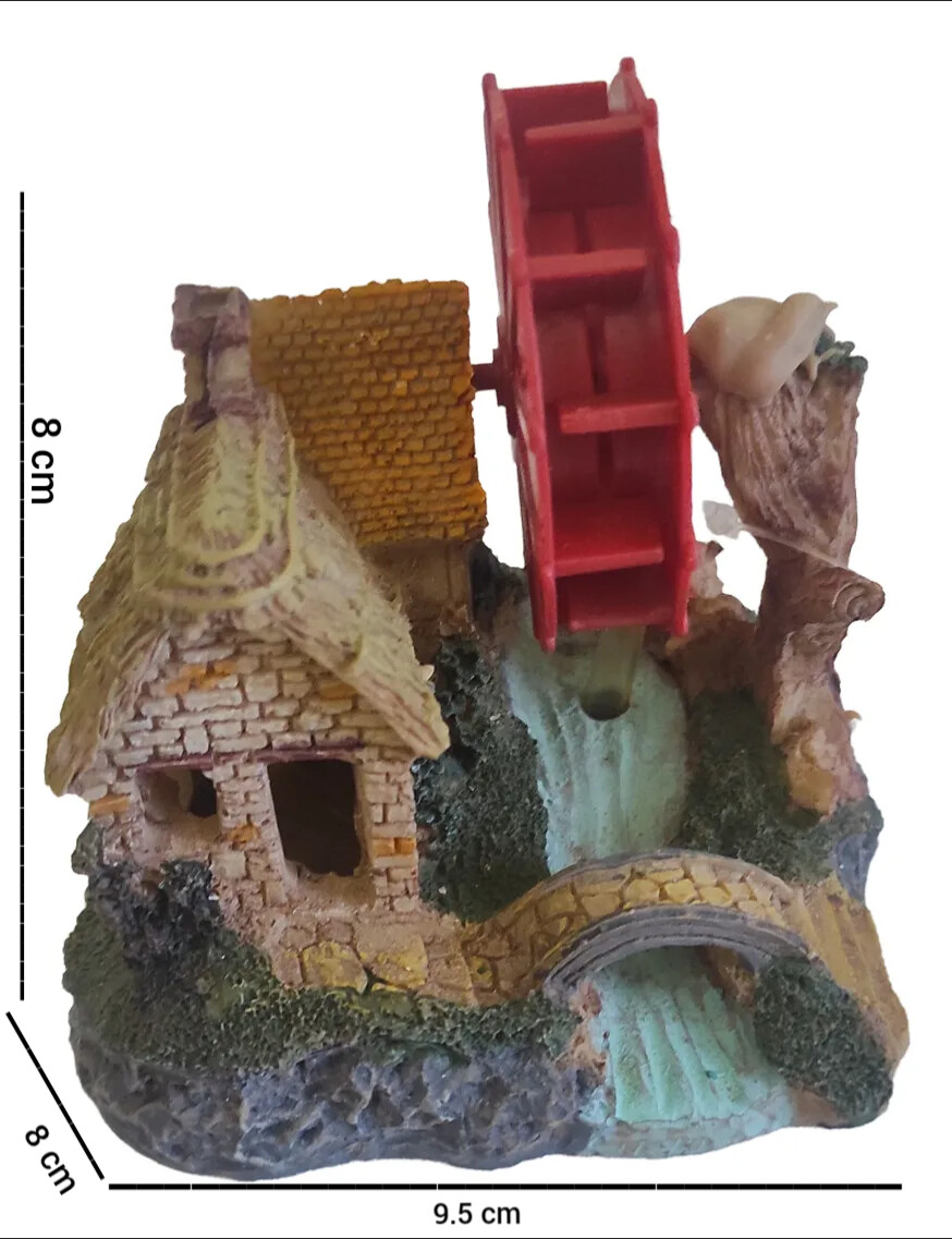 Resin Waterwheel House Aquarium Ornament is a beautifully crafted decorative piece designed to enhance the natural look of your aquarium. Made from high-quality, non-toxic resin, it is completely safe for all freshwater and marine setups. Its detailed house and waterwheel structure adds a realistic touch while providing small hiding spaces for fish and shrimps. This ornament creates an attractive focal point in the tank and blends perfectly with plants, stones, and other aquascaping elements.