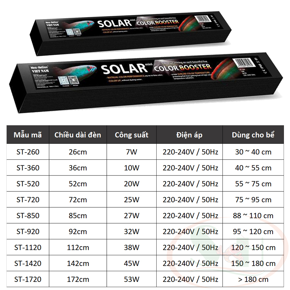Neo‑Helios ST‑520 Solar Color Booster is a 52 cm submersible LED light that replicates the warm, natural glow of sunlight. With a 6,700 K “sun‑light” spectrum, it enhances the body coloration of tropical fish without tinting the water. The light is waterproof, energy-efficient, and ideal for boosting fish vibrancy in small to medium freshwater aquariums.