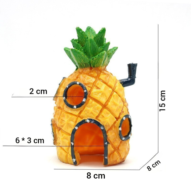 SpongeBob SquarePants Pineapple House is a vibrant and decorative aquarium ornament designed to add color and character to your tank. Made from durable, non-toxic resin, it is completely safe for both freshwater and marine aquariums. Its detailed pineapple design creates an attractive focal point while also providing a small hiding spot for fish, shrimps, and fry. Perfect for enhancing the visual appeal of any aquarium setup.