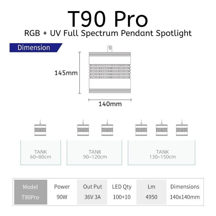 Week Aqua T90 Pro is a compact, high-efficiency LED aquarium light designed to enhance plant growth and bring out vibrant colors in both freshwater and marine tanks. Its energy-efficient design, powerful illumination, and durable build make it perfect for hobbyists seeking professional lighting in small to medium aquariums.
